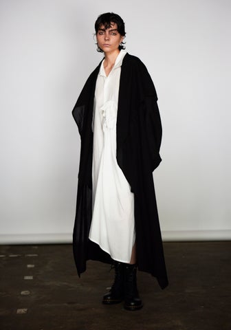 ジャケット、デニム、シャツ、アシンメトリカルジャケット、デニムカラーのジーンズ、ウールギャバジンのフード付きコート、オーバーオールドレス、ローブコート、ノースリーブブラウス、ドレス