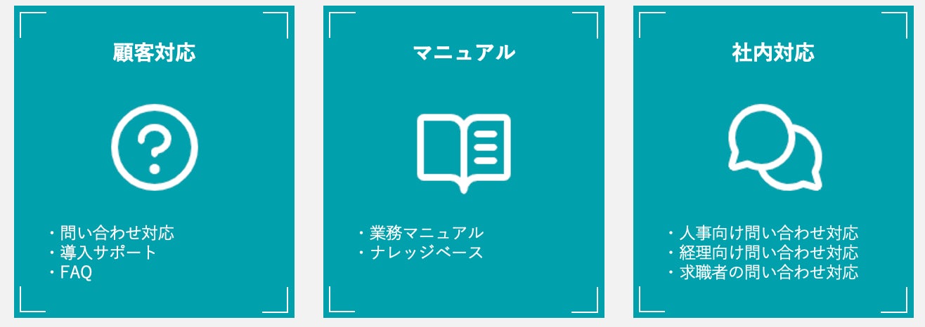 御社専用のAIチャットボットを作成できるため、学習させるデータ次第であらゆる業界や業種、業務の中で利用することができます。
