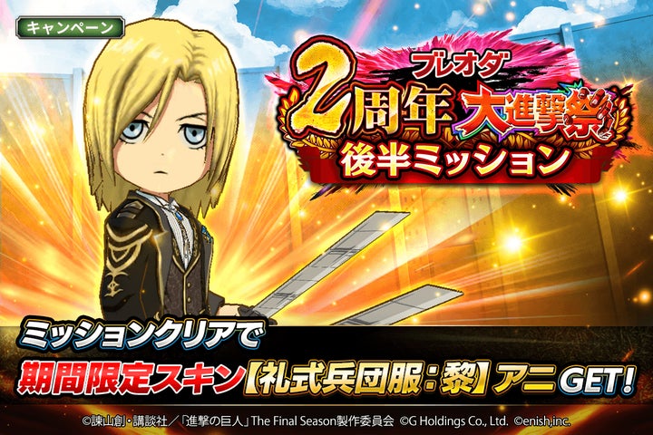 - ゲームアプリ「進撃の巨人Brave Order」の2周年記念イベント開催