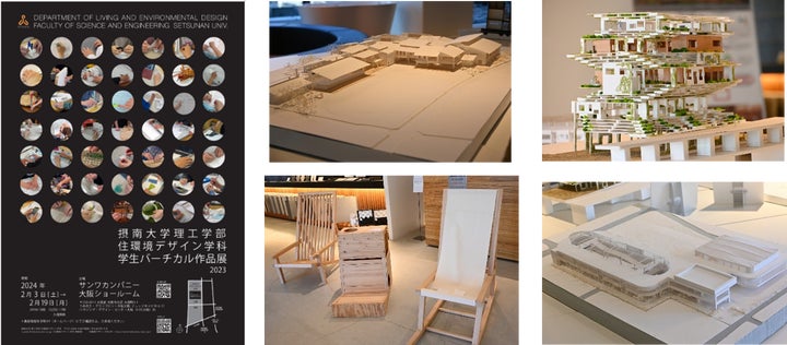 住環境デザイン学科、環境技術、美しい空間、建築、社会、作品、展示、成果、足を運ぶ、卒業研究、授業、コンペ、フィードバック、デザイン性、環境への配慮、自然との調和、評価、持続可能な建築、共生デザイン、意欲