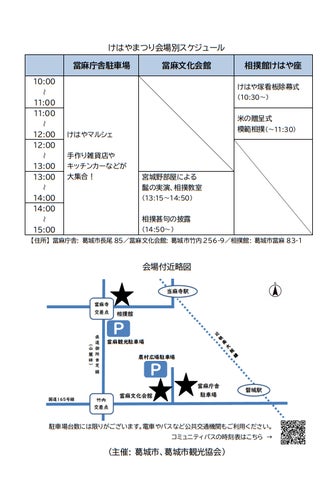 また、當麻庁舎駐車場では約40店舗が参加する「けはやマルシェ」が開催されます。