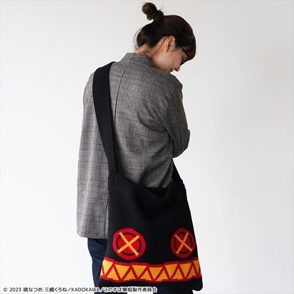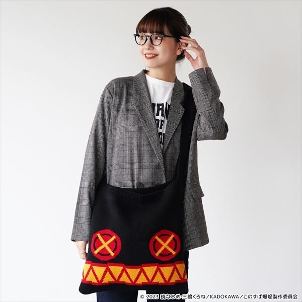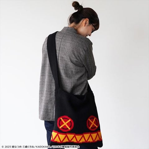 このバッグは、めぐみんの帽子をモチーフにした大きなワンショルダートートバッグで、ざっくりとしたニットの風合いが特徴です。