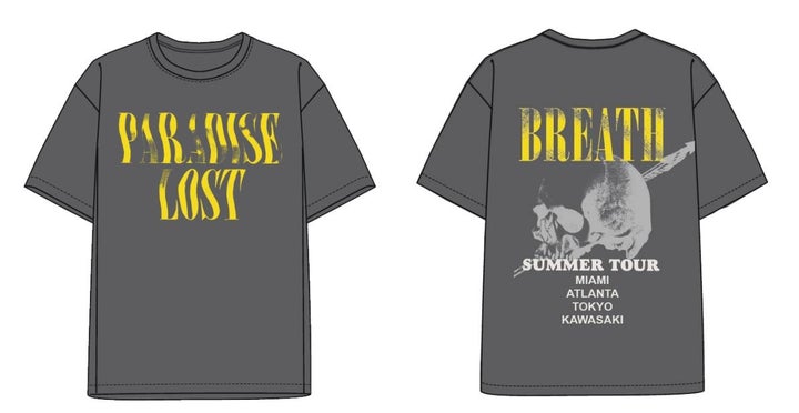 - ツアーTシャツで、マイアミ、川崎、アトランタの地名がプリントされています