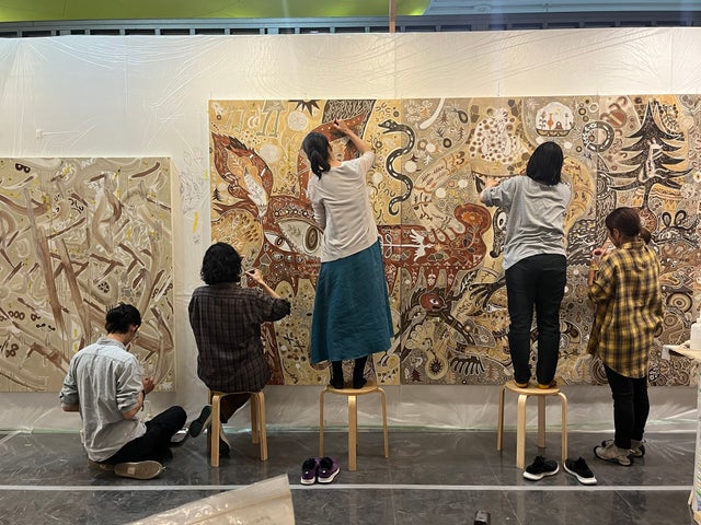 - 淺井裕介さんが滞在制作し、福井県内の土を使用した大きな「泥絵」作品を制作