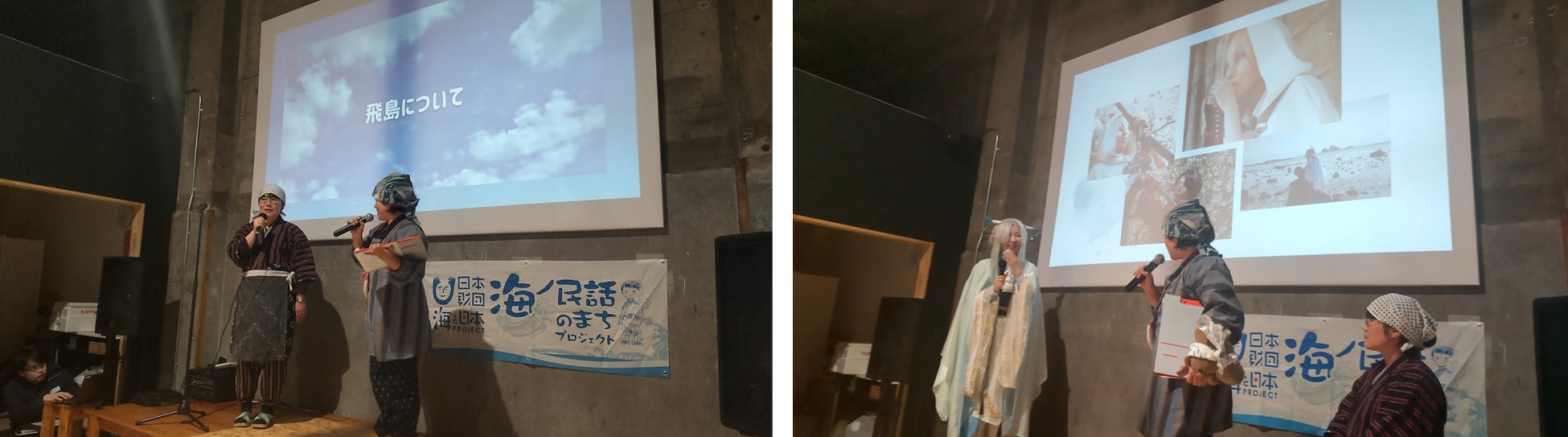 - フィールドワークでは「飛島エンタメ会議」として、オープニングや海と日本プロジェクトの説明、海の生き物トークショー、クイズアトラクション、コスプレイベントなどが行われた