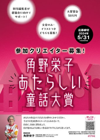 ポプラ社は、角野栄子さんと共に「角野栄子あたらしい童話大賞」を設立しました。