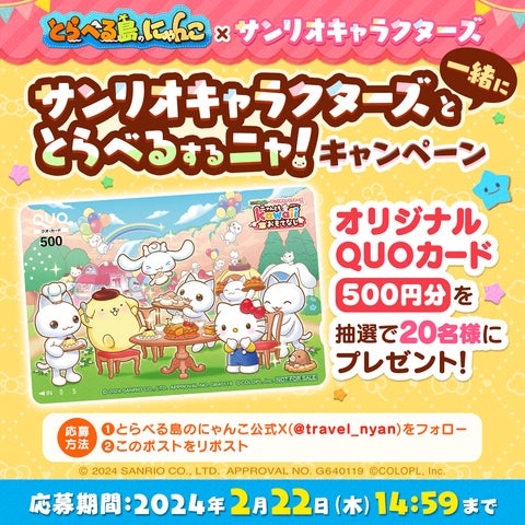 2月22日(木)15:00から、「とらべる島のにゃんこ」初のコラボイベント「とらべる島のにゃんこ×サンリオキャラクターズコラボ」が開催されます。