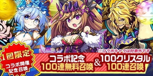 コラボを記念して、無料100連召喚や、合計300個のクリスタルが貰えるログインボーナスを開催します。