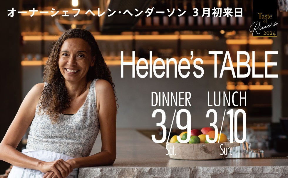 イベント名は「Taste of Riviera ~Helene’s TABLE~」で、予約制のディナーとランチが用意されています。
