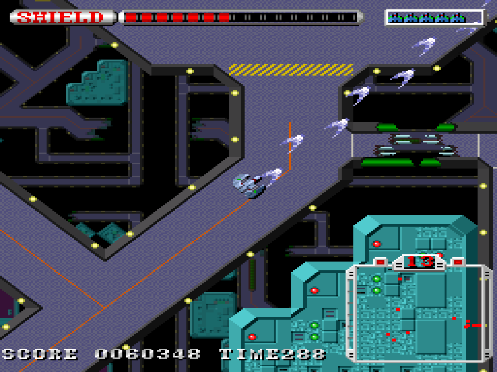 本作は1990年にリリースされたシューティングゲーム。プレイヤーは重機動兵器グラナダを操作して全9ステージを攻略します。グラナダにはショットと、反動がある代わりにショットの16倍のダメージを与えられるブラスターが搭載されており、これを駆使して戦います。なおグラナダは砲台の向きを固定したまま移動することが可能。使い方次第では効率良い撤退戦や、臨戦態勢を維持したまま角を曲がることができます。その挙動にはひとクセあるものの、攻略にはこうしたテクニックは必要不可欠! ゲーム序盤ではグラナダならではの挙動に慣れておきましょう。