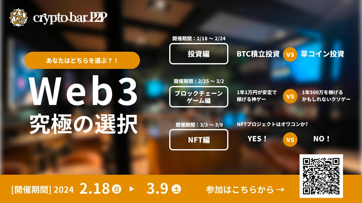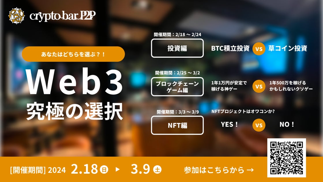 - 2024年2月18日から3月9日までの3週間、CryptoBar P2Pが新企画「Web3究極の選択ゲーム」を開催