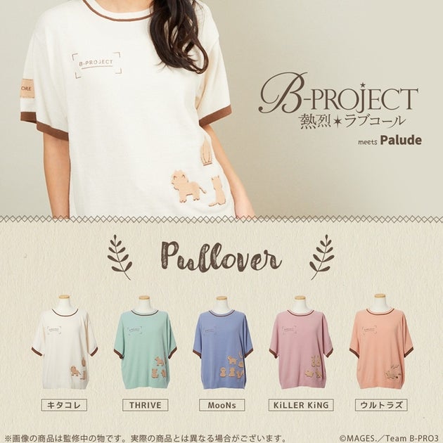 アニメやゲーム作品向けのニット製品や雑貨を展開するブランド「Palude」とのコラボアイテムで、各グループをイメージしたデザインが特徴です。