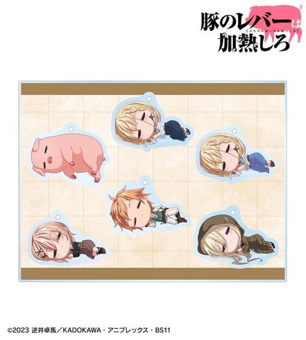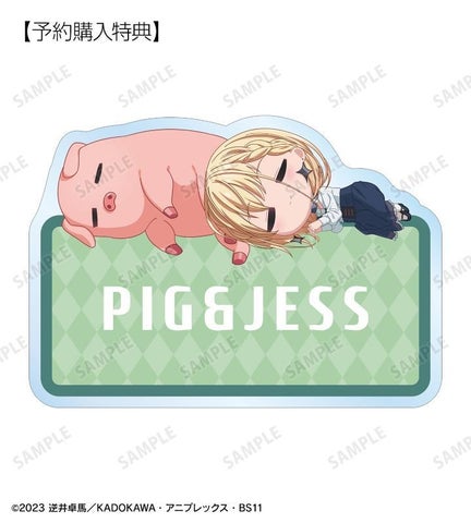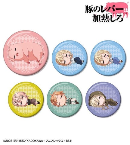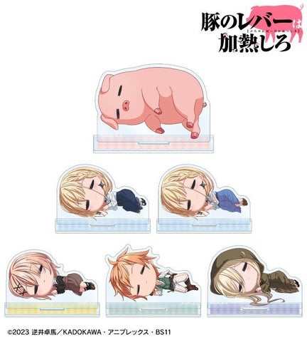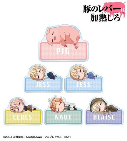 豚、ジェス、セレス、ノット、ブレースのちびキャラクターが描かれたアクリルスタンドやアクリルネームプレート、缶バッジ、アクリルキーホルダーセット、フォンタブなどが販売されています。