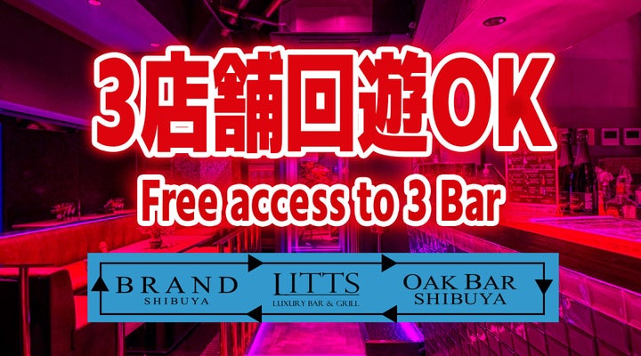 渋谷ナイトサーキットが開催されます!終日飲み放題&出入り自由で、3店舗回遊OK!参加店はBAR BRAND、LITTS、OAK。