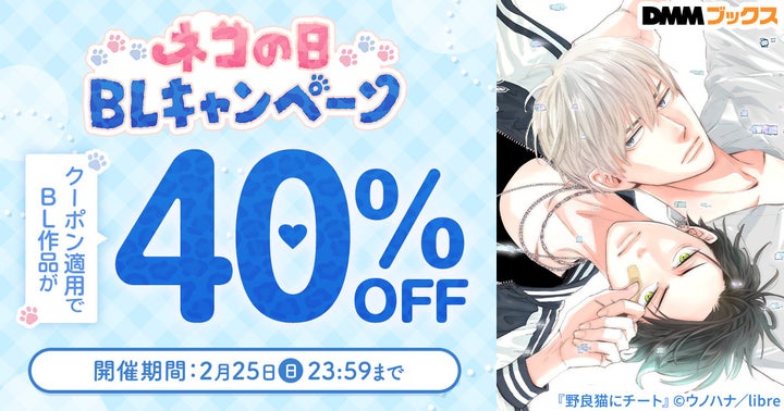 2月22日の「猫の日」にちなんで、BL作品が40%OFFで楽しめる「ネコの日BLキャンペーン」が開催中です。