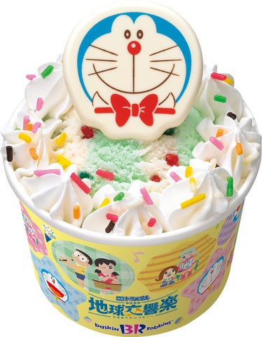 可愛いキャラクターに変身する人気のアイスクリームで、映画「ドラえもん のび太の地球交響楽」のドラえもんも登場します。
