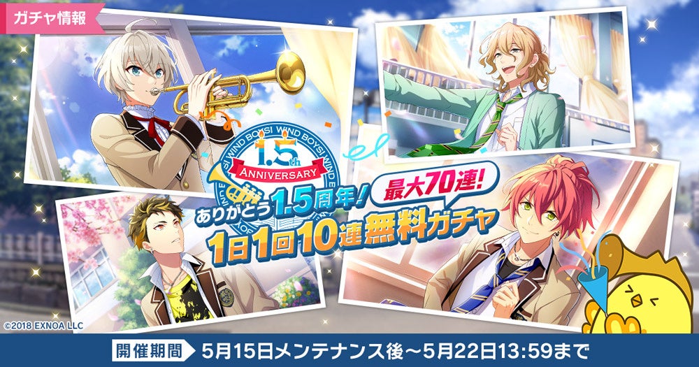 - DMM GAMESが運営する『ウインドボーイズ!』が1.5周年を迎え、イベント「願いを叶える流麗の調べ」が開催される。