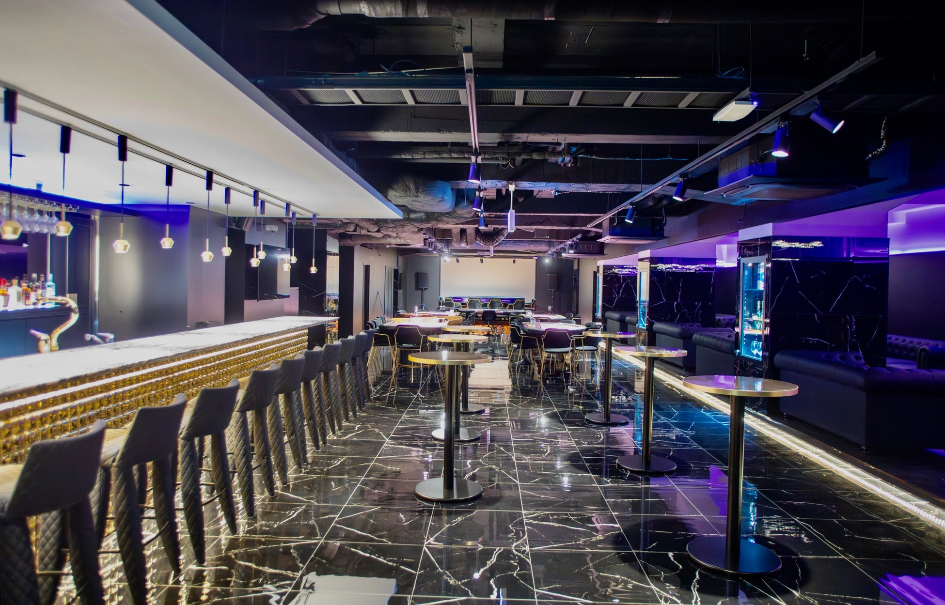 約100坪・総工費1億4千万以上かけた店内は、ブラックとゴールドを基調とした大理石調の内装に、カジノ台の鮮やかなパープルがアクセントに。店内の香りはラスベガスのカジノ施設と同じ物を使用し、まるで本場のカジノに行ったような気分を味わえます。カジノエリア以外にも、ゆったりおくつろぎいただけるソファー席やバーカウンターも完備。バーや飲食のみのご利用は勿論、結婚式の二次会やパーティーなどのイベント会場としてのご利用も可能です。