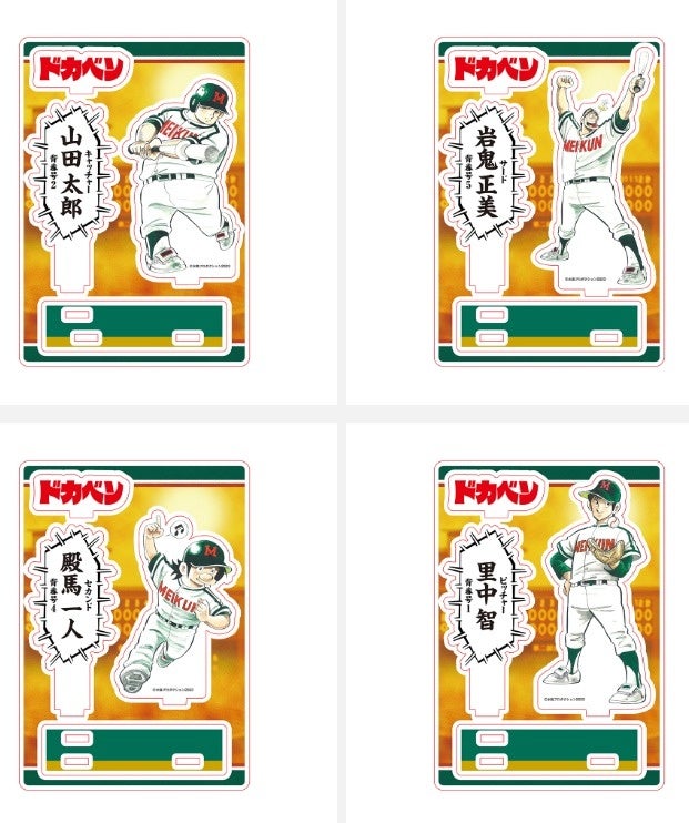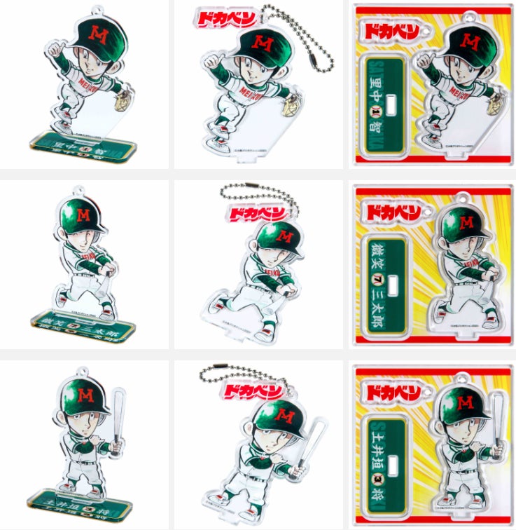 明訓高校風のグッズやキャラクターアパレル、アクリルスタンドなどもあります。