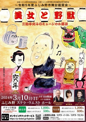 - 令和6年3月10日(日)にふじみ野ステラウェストで三遊亭究斗のミュージカル落語「美女と野獣」が開催