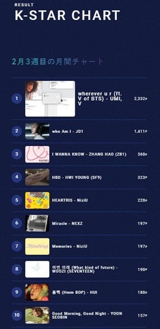 - KSTAR CHARTでUMI,Vの曲が2週連続1位