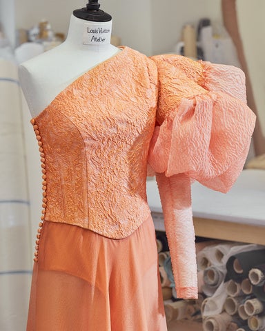 彼女はルイ・ヴィトンのアンバサダーとして、カスタムメイドのオレンジのドレスとハイジュエリーを身に着けました。