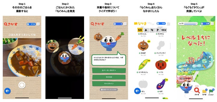 - 子どもたちは食事を撮影し、”もぐみん”を見つける楽しみやクイズに挑戦