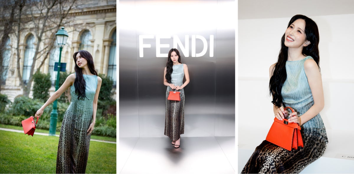 2024年春夏のフェンディのクチュールコレクションがパリで開催され、ミナは特徴的なドレスやバッグを身に着け、華やかな街を満喫しました。
