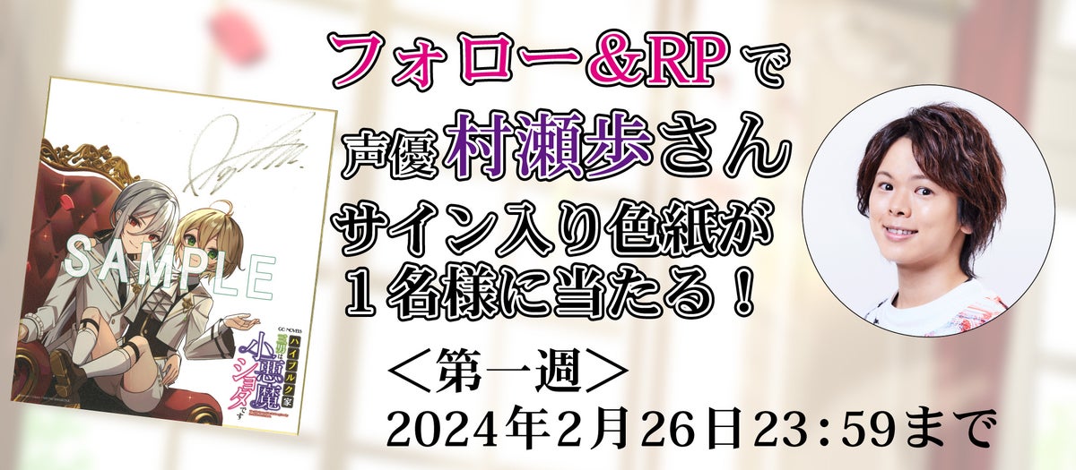 作品公式Xでは、村瀬歩さんのサイン入り色紙が抽選で当たるキャンペーンを開催中。