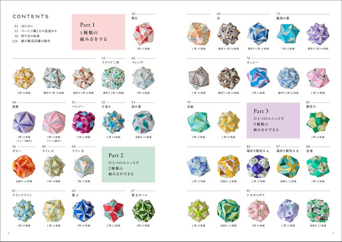 手のひらサイズの12枚セットや、折りごたえのある30枚セットなど、様々なパターンが掲載されています。