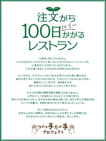 - つくっ手たべ手プロジェクト、注文から100日くらいかかるレストラン