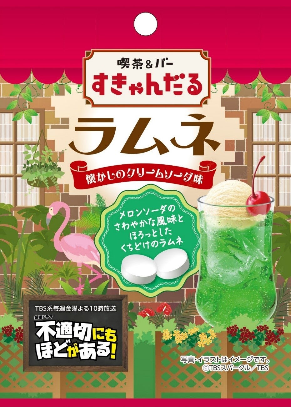 喫茶店「すきゃんだるラムネ」はメロンソーダをイメージした爽やかな味わいとレトロなデザインが特徴で、2024年2月27日から全国のセブン‐イレブンで販売されます。