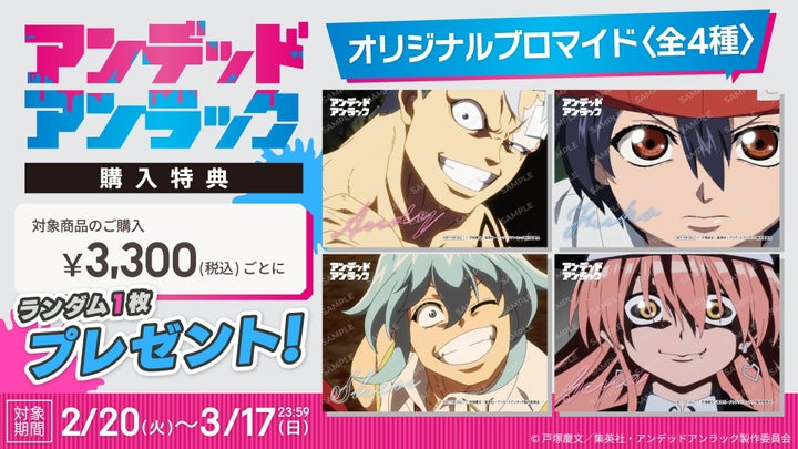 - Anique株式会社が運営する「Aniqueショップ」でTVアニメ『アンデッドアンラック』のオリジナルグッズが2月20日から予約販売開始