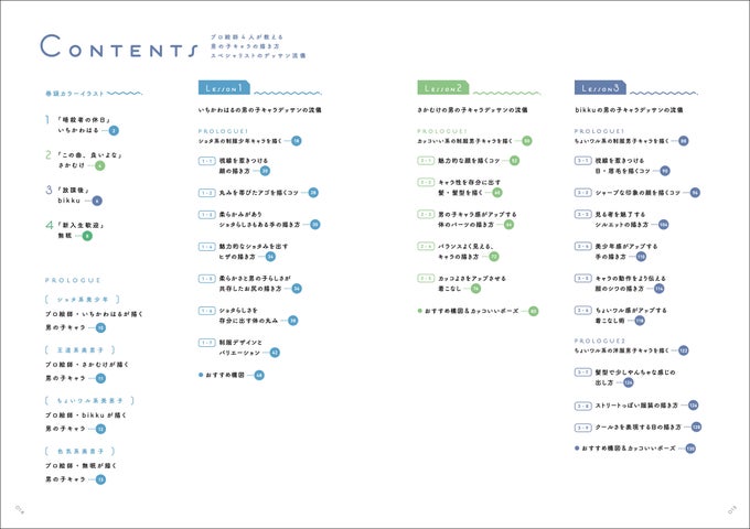 いちかわはる、さかむけ、bikku、無眠のそれぞれのデッサンスタイルが紹介されています。
