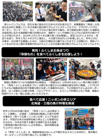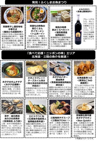 福島県の魚介料理を楽しめる「発見!ふくしまお魚まつり」と北海道・三陸地域の厳選魚介料理を集めた「食べて応援!ニッポンの幸」エリアも同時に開催されます。