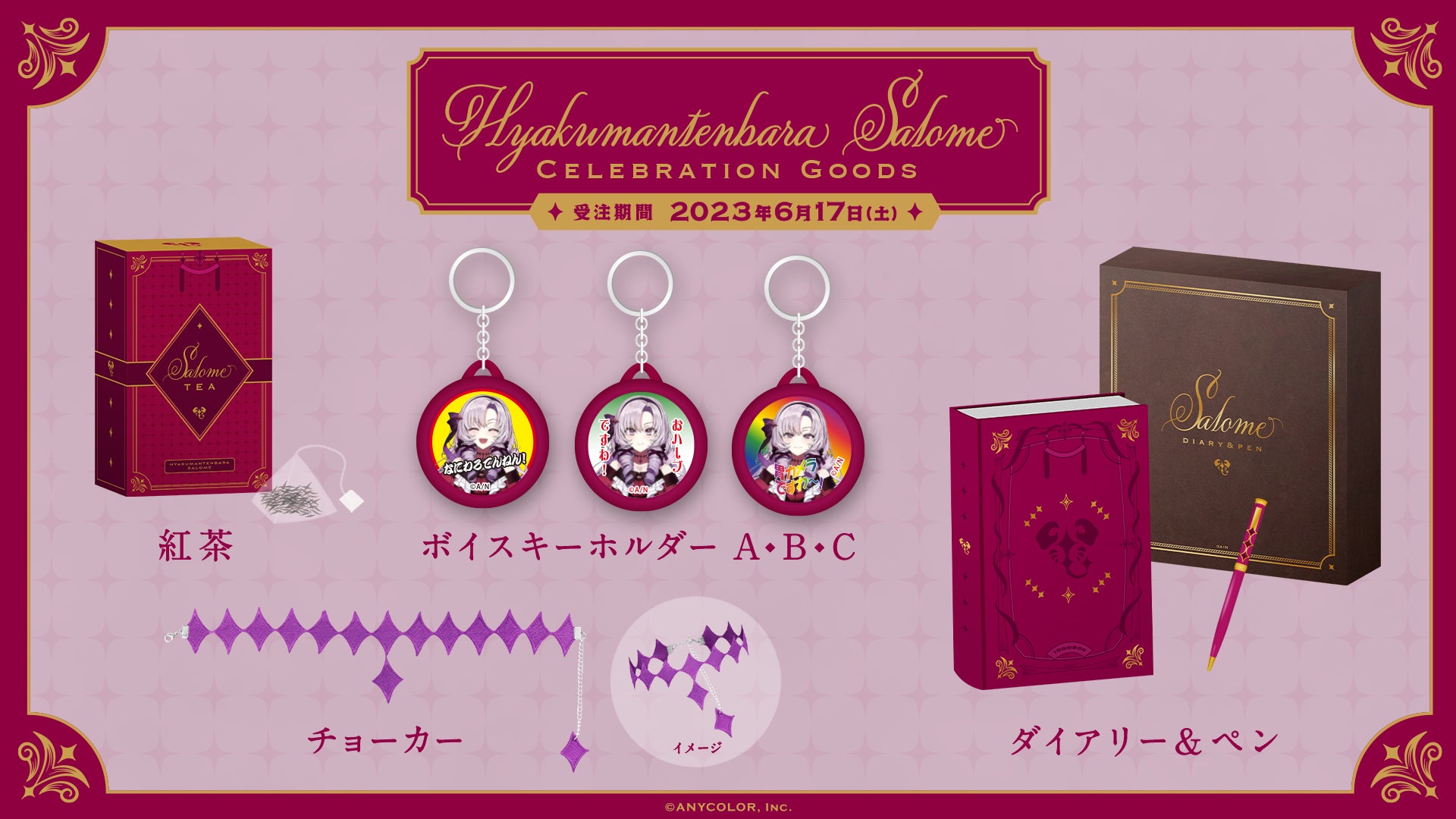 - Hyakumantenbara Salome Celebration Goods、チョーカー、ダイアリー&ペン、ボイスキーホルダー、紅茶