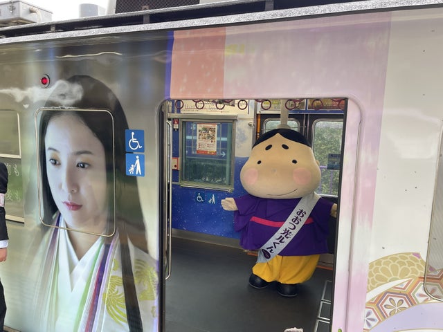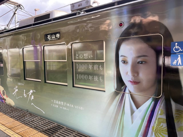 さらに、京阪電気鉄道も「光る君へ」をテーマにしたラッピング列車を運行しており、吉高由里子さん演じる紫式部役や番組ロゴがデザインされ、石山寺や大津の観光地をPRしています。
