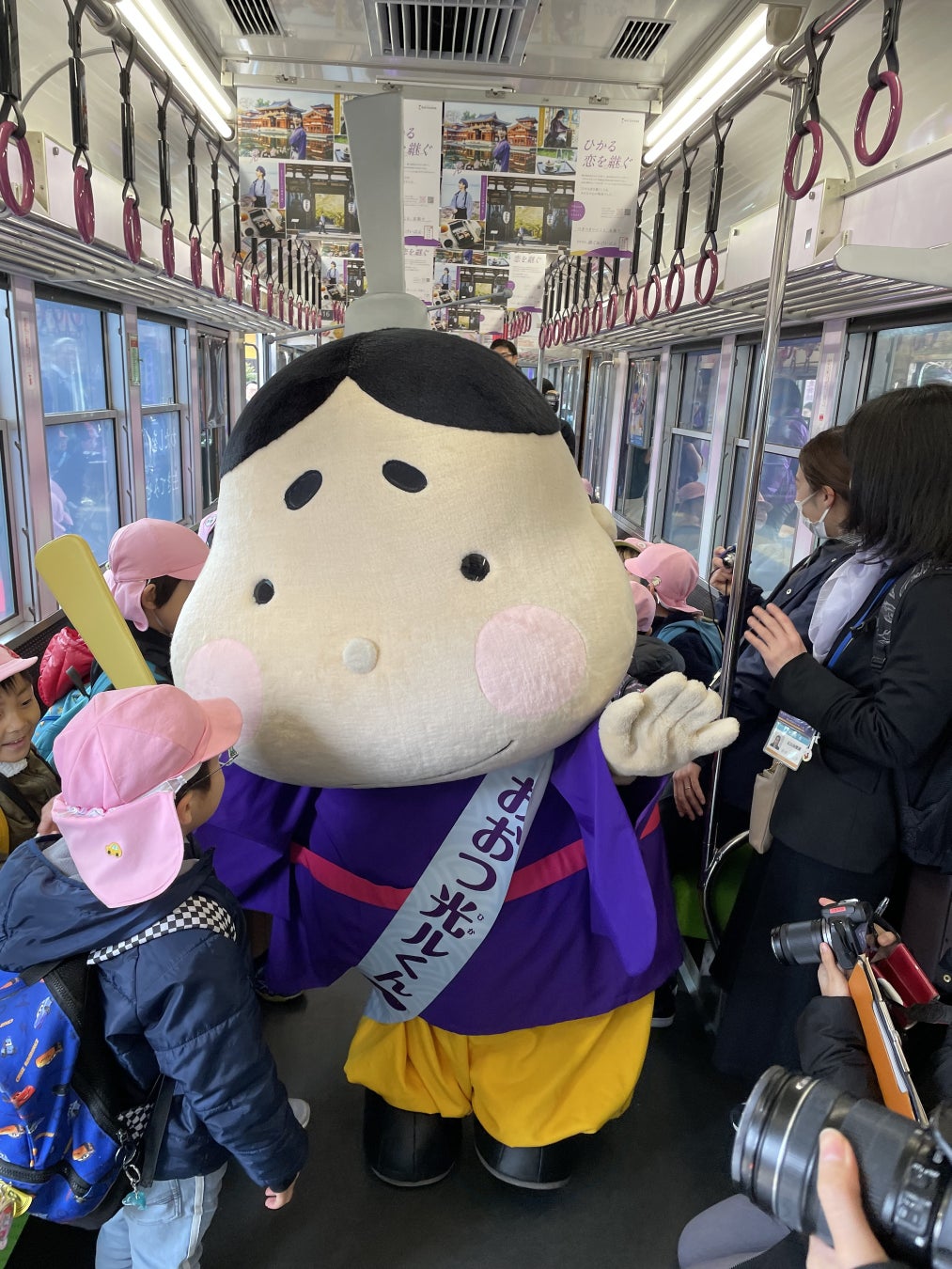 出発式には関係者や地元キャラクターが参加し、観光振興にも期待が寄せられています。