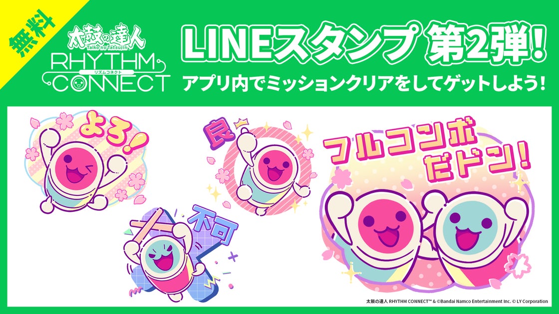 期間限定!太鼓の達人RHYTHM CONNECT無料LINEスタンプ配信中!新イベントも開催中!