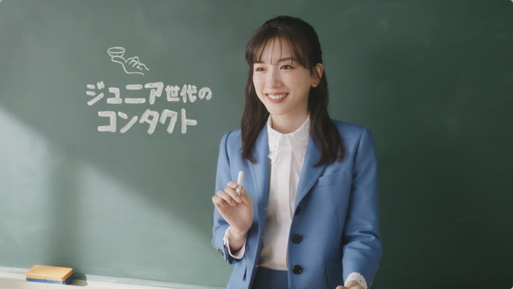 CMでは、永野さんが小学校の先生役を演じ、コンタクトデビューについて呼びかけます。