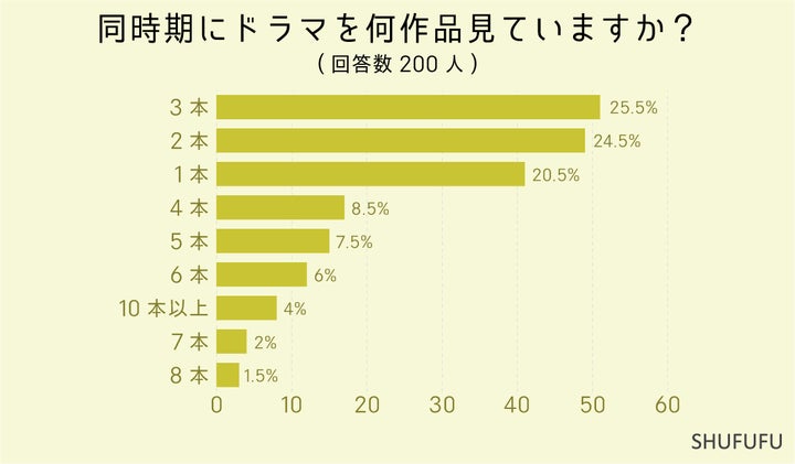 視聴方法ではリアルタイムが1位で、同時に3本のドラマを見る人が多かったです。