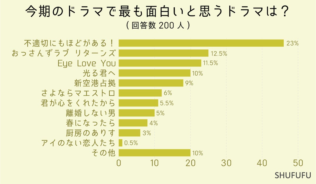 株式会社しんげんが運営する主婦向け情報メディア「SHUFUFU」は、2024年2月に男女200人を対象にした「今期面白いTVドラマ」に関するアンケート調査を実施しました。