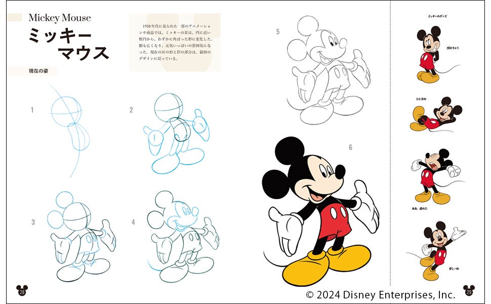 この本では、ディズニーのキャラクター100種類の描き方と歴史が紹介されています。