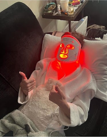 メイクアップアーティストは、LEDマスクが肌の準備に不可欠であると強調し、このマスクは赤色と近赤外線の光を組み合わせて、ハリのあるつや肌へ導く美顔器です。