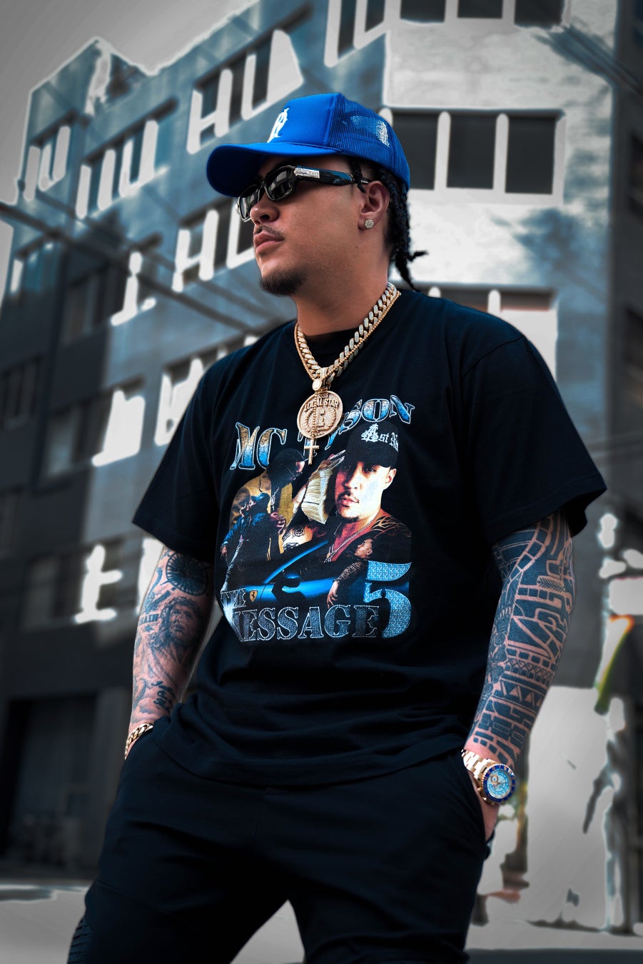 Rap T-Shirtsは、『THE MESSAGE 5』のキービジュアルを複数盛り込んだプリントをフロントに、TOURを敢行したロケーションをバックプリントに採用している。