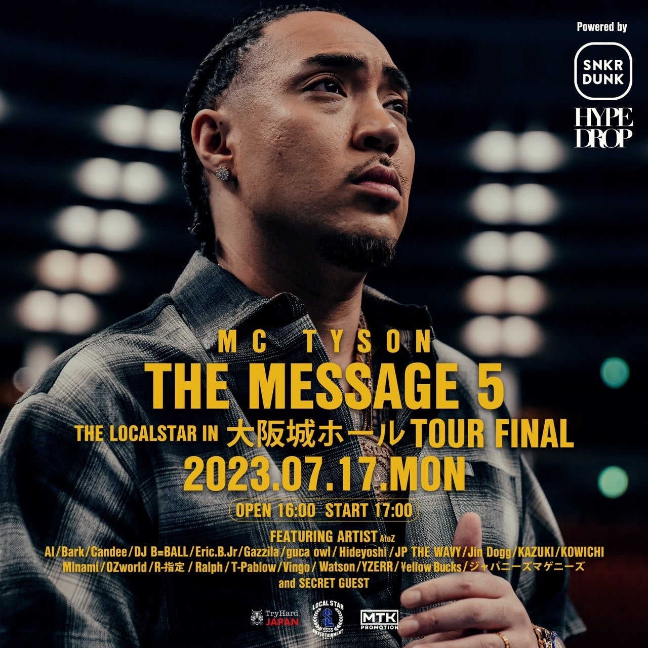 2023年には待望の5作目『THE MESSAGE 5』をリリースしたMC TYSON。さらに2023.07.17(MON)に自身最大規模となる大阪城ホールでの単独公演『THE LOCALSTAR IN 大阪城ホールJAPAN TOUR 2023 FINAL』を開催する。