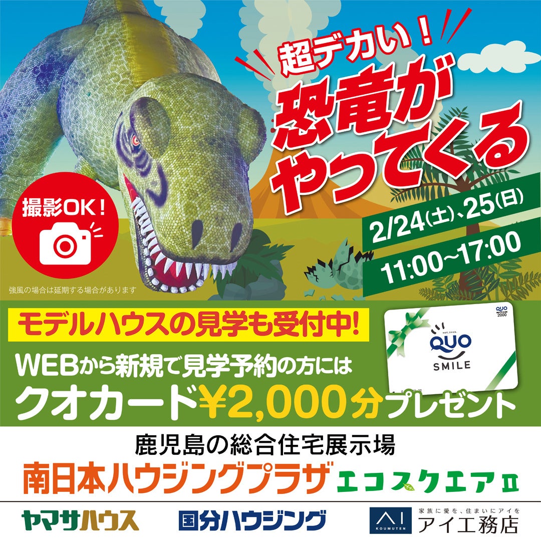 週末の2月24日(土)、25日(日)に南日本ハウジングプラザへお気軽にご来場ください。