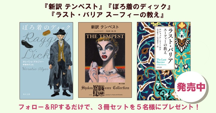 『新訳 テンペスト』『ぼろ着のディック』『ラスト・バリア スーフィーの教え』の3冊を抽選で5名にプレゼントします。