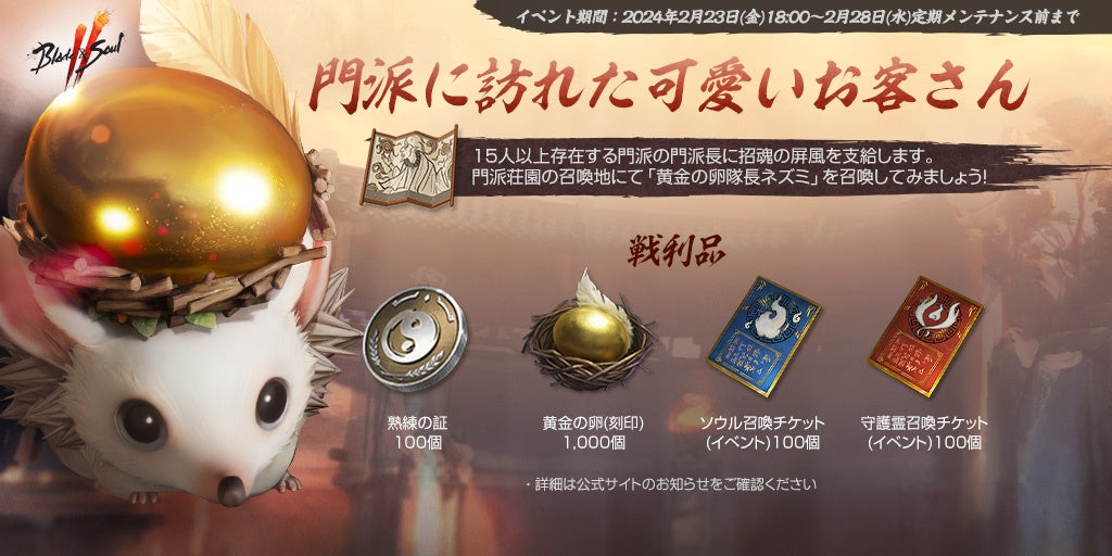 NCSOFTは『ブレイドアンドソウル2』で、門派システムのリニューアルとイベント開催を発表しました。