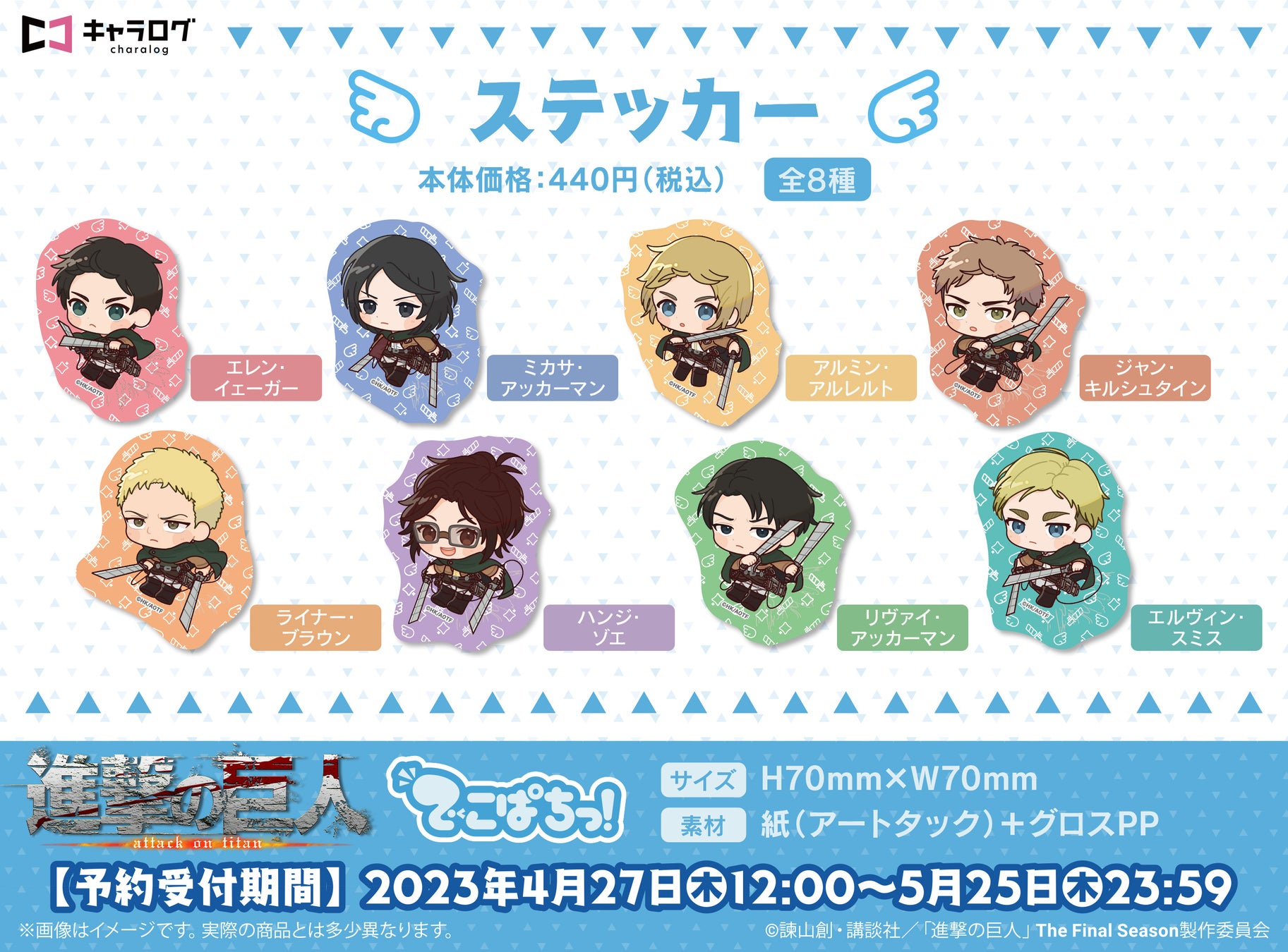 - 1. 「進撃の巨人」のオリジナルグッズ「でこぱちっ!」シリーズ3商品が発売中。